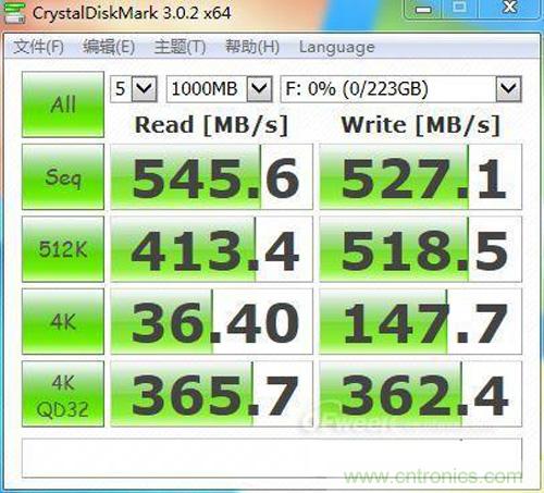 HyperX Savage 240G SSD接在原生的SATA3.0接口上的測試成績完勝SATA2.0。在SATA2.0接口上,持續讀寫速度僅270 MB/s / 264MB/s,而相對的,SATA3.0高達545 MB/s /527MB/s,很明顯受到接口理論傳輸性能的限制。另外,4K隨機讀寫方面也受到不少的影響。