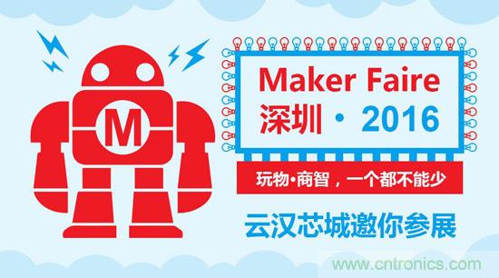 【導(dǎo)讀】2016年10月21日-10月23日Maker Faire在深圳南山蛇口海上世界舉辦,云漢芯城作為合作伙伴參展,為大家準(zhǔn)備各種抽獎(jiǎng)及現(xiàn)場開發(fā)板特賣等活動(dòng),屆時(shí)我們不見不散,一起嗨翻天。