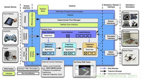 注意:現在很多機器人開發者一上手就是ROS,雖然ROS是一種比較不錯的系統架構,它的基于node的思想在當時是非常先進的,在今天已成為主流。但我們也要清楚,它只是其中一種架構,尤其是在小型嵌入式設備上定制機器人系統時,其他的架構可能會更有效率。另外Master中央控制模式,也是單機時代的產物,在多機的情形就不是很適用。