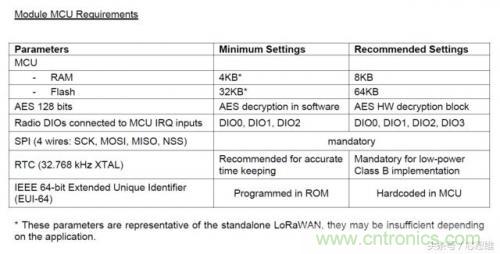 LoRaWAN模組關(guān)鍵的器件是MCU和SX127x。MCU多以超低功耗為主要選擇,在Semtech公司的應(yīng)用筆記中提到了MCU的規(guī)格和要求 -《AN1200.28 LoRaWAN MCU Spececification and Requirements》: