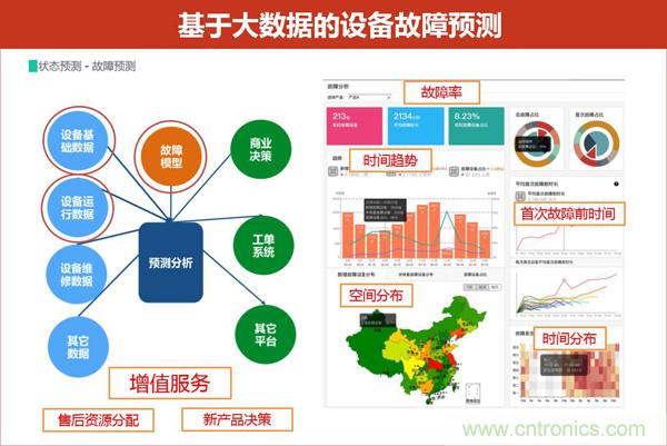 舉例而言,設備故障預判是智能電器最基本的一項智慧化服務,它通過云端預置的故障模型,分析所采集到的家電基礎數據與實時運行數據,從而為消費者提供一些增值服務,如上門清洗維護、故障報警、上門維修等,同時幫助企業進行決策分析,如售后資源分配、下一代產品的優化等。