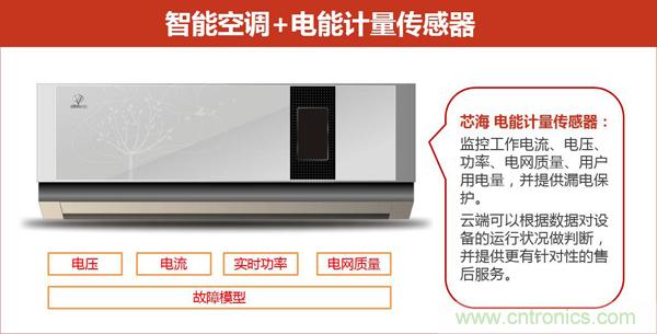 “比如智能空調”,王偉表示,“由芯??萍纪瞥龅碾娔苡嬃?a target="_blank" style="text-decoration:none;" >傳感器,不僅可以監測用電量,幫助用戶實現家庭能源管理,還可以實時監測設備的電壓、電流、功率及區域電網質量,搭配我們與客戶共同研發的故障模型,從而完成對空調故障、制冷、漏水、固件損壞的預判,針對性為用戶提供售后服務。”