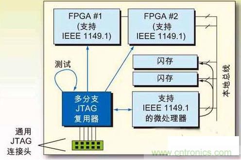 在每塊電路板上添加一個策略性IC器件-JTAG復(fù)用器件,目的是去除電路板上的多個1149.1接頭并管理多個JTAG通路。這個JTAG復(fù)用器件所占用的電路板空間通常比一個JTAG接頭還小,但卻簡化了元件的隔離,也簡化了提高接入效率所需掃描路徑的組織。