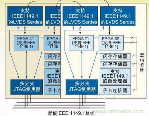 當(dāng)能夠?qū)σ粋€背板上的多板卡系統(tǒng)級使用到JTAG的特性時,就實(shí)現(xiàn)了下一代JTAG接入。在這種環(huán)境下,仍然能夠單獨(dú)實(shí)現(xiàn)單板卡級JTAG功能,而且 還可以利用到板卡間的功能。這一代JTAG應(yīng)用不 但促進(jìn)了單板卡上不同規(guī)則的設(shè)計(jì)團(tuán)隊(duì)相互合作,也促進(jìn)了整個系統(tǒng)下不同板卡設(shè)計(jì)團(tuán)隊(duì)之間的合作。如果在上一代JTAG應(yīng)用中采用了一個JTAG多路器,那 么這個多路器支持多支路(mulTI-drop)接入。采用一種尋址方案,可以將串行JTAG總線用于多支路配置,提供對多板卡的支持。而一旦JTAG能 夠接入一塊背板上的多個板卡,就能實(shí)現(xiàn)系統(tǒng)級的配置或編程(例如,JTAG可以并行接入多塊板卡)。