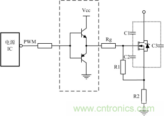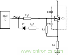 開關(guān)管開通瞬時(shí),驅(qū)動(dòng)電路應(yīng)能提供足夠大的充電電流使MOSFET柵源極間電壓迅速上升到所需值,保證開關(guān)管能快速開通且不存在上升沿的高頻振蕩。