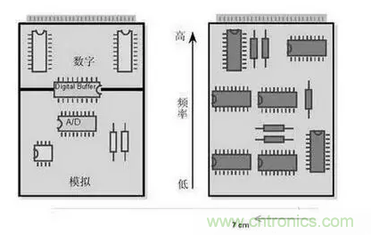 數模混合互連設計的目的就是要通過合理的布局、布線、屏蔽、濾波、電源地分割等設計方法來保證數字信號的干擾只存在于數字信號區域。