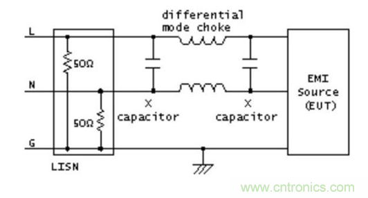 電容的作用是將高頻干擾電壓“短路”,另外,當干擾信號頻率很高時,抑制線圈將產生很大的交流阻抗。圖2顯示了兩種濾波類型的結構,其中,LISN是用于測量目的的線性阻抗穩定網絡。如果是共模問題引起的干擾,X類型電容基本上沒有作用,因為兩線上的干擾電壓是一樣的。因此,了解干擾類型對于選擇合理的電路結構將起重要作用,并為解決問題提供技術依據。