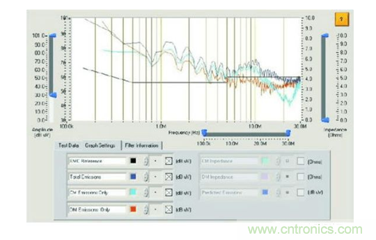 圖3 傳統測試儀獲得的總干擾、共模干擾和差模干擾