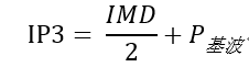 實際上,IP3/TOI是計算所得而非測量所得的結(jié)果。一階產(chǎn)物和三階產(chǎn)物之間的功率增加比是3:1,利用以下公式可以計算出IP3。
