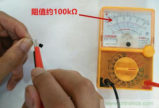 需要指出的是一些鍺管的正反向電阻較小,可以將檔位降低到R×100,這樣區別更明顯;