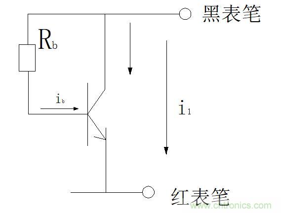 測量pnp三極管的方法同上,不同的是基極應該接負極(紅筆)。