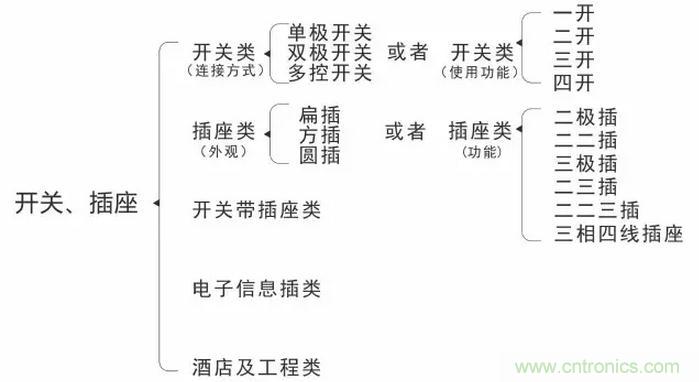 插座類(功能):二極插、二二插、三極插、二三插、二二三插、三相四線插座