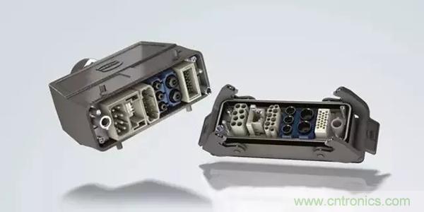 第二個(gè)例子是,Han® 高密度模塊:滿載的情況下,在模塊中有25個(gè)插針,能夠傳輸4A/50V的信號(hào)。其他具有更高的接觸密度的Han®模塊也在開發(fā)之中。