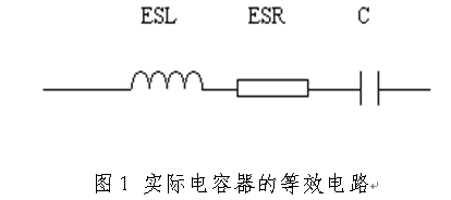 實際電容器的電路模型如圖1所示,它是由等效電感(ESL)、電容和等效電阻(ESR)構成的串聯(lián)網絡。