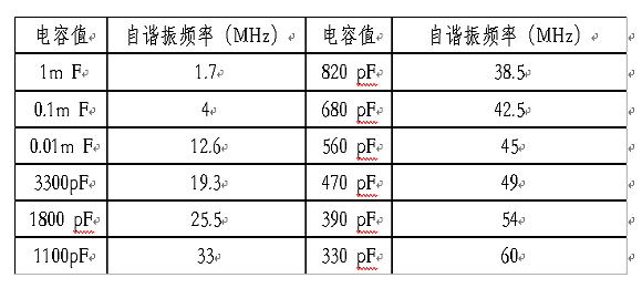 根據LC電路串聯(lián)諧振的原理,諧振點不僅與電感有關,還與電容值有關,電容越大,諧振點越低。許多人認為電容器的容值越大,濾波效果越好,這是一種誤解。電容越大對低頻干擾的旁路效果雖然好,但是由于電容在較低的頻率發(fā)生了諧振,阻抗開始隨頻率的升高而增加,因此對高頻噪聲的旁路效果變差。表1是不同容量瓷片電容器的自諧振頻率,電容的引線長度是1.6mm(你使用的電容的引線有這么短嗎?)。