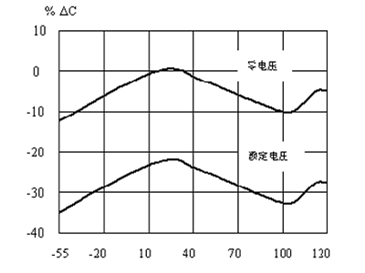 - 電容器的電容量隨工作電壓變化。