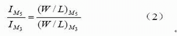 式(1)中n為亞閾值因子,UT為熱電勢。M3和M5組成電流鏡,則: