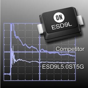 圖2:安森美半導體ESD9L的ESD保護性能明顯優越于競爭器件。