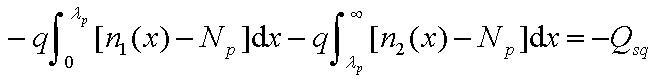 本文采用電子分布曲線擬合近似,設多晶硅/二氧化硅界面處為0=x點,向上為正,峰值處的點的坐標為,分別用以下分布來近似上升和下降階段的載流子分布: