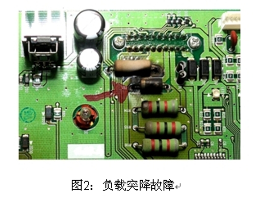 這類并聯的電子系統如圖1所示,所有連接在供電線路上的電子系統的保護器件不可能平均分擔瞬態(tài)能量。瞬態(tài)能量對連接的那些最低阻抗的保護器件的影響尤為嚴重。因此,在汽車電子設計中,一個保護器件要能夠安全地承受負載突降狀態(tài)瞬變的全部能量。圖2是出現故障的儀表板(cluster panel)負載突降的照片,其故障原因在于,流經這個器件的電流沒有與汽車中另一個電子單元中的其他保護器件共同分擔。