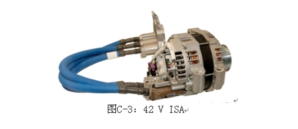 用于中型混合動力系統的ISG(集成式起動機/發(fā)電機),輕型汽車為14 V,120 A,而在制動和停車期間沒有燃料噴射時,空轉引擎為42 V,60至80 A輸出。