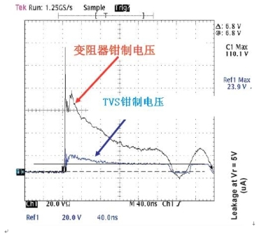 性能:TVS有更低的箝制電壓、更低的漏電以及更快的響應速度(如圖8所示)