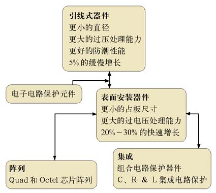 為了看清電路保護元件的市場前景,我們必須了解使用這些電子元件的終端市場的未來趨勢。這些趨勢是密度板應用的增長;USB 2.0和IEEE1394即插即用協議的接受度增加;終端使用功能的集中和互通;對ESD的日益關注。
