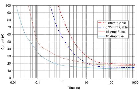 熔斷器的工作原則是一個簡單的I2R與時間的關系。電流越大,熔斷或開路時間越短。熔斷器的功耗與通過熔斷器的電流的平方成正比。當功耗過高時,熔斷器熔斷。這個特性同樣適用于受熔斷器保護的線束。當熔斷器的“熔斷”特性與所保護的線束相似,只是處理電流能力略低時,熔斷器是一個理想的選擇。