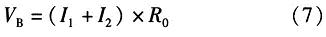 B點的電壓為電阻上的電壓,可由歐姆定理計算得到。計算溫度上升翻轉點TH,當溫度上升時,由前分析可知,TSD為高電平,M2截止。因此流入R0的電流只有I1一路。此狀態下VB電壓的表達式為
