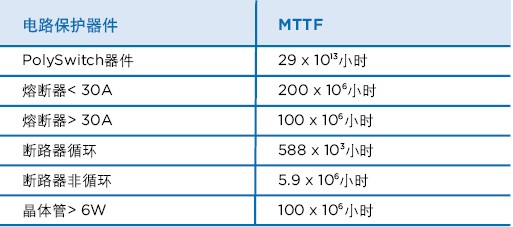 表2. 電信應(yīng)用中電路保護(hù)器件的MTTF比較