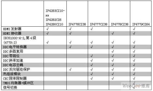 HDMI系列解決方案既有等簡單的ESD保護器件,也有IP4778CZ38這樣高度集成的接口調(diào)節(jié)解決方案,又或者IP4779CZ64等HDMI開關(guān)。、IP4778CZ38和IP4779CZ64解決方案均具有獨一無二的競爭優(yōu)勢,例如帶DDC斜率加速器的DDC緩沖技術(shù),以及確保用戶能夠驅(qū)動長DDC數(shù)據(jù)線的EMI去耦技術(shù)。
