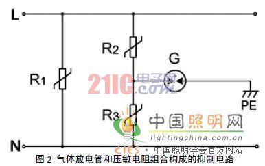 - 氣體放電管和壓敏電阻組合構成的抑制電路原理