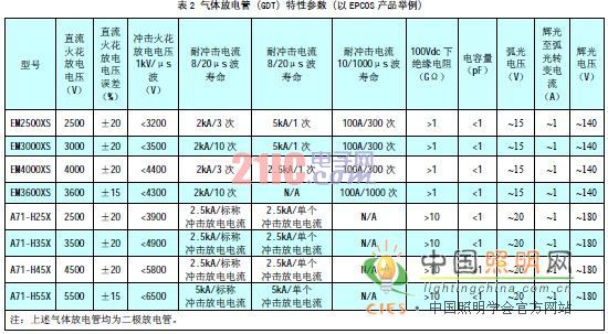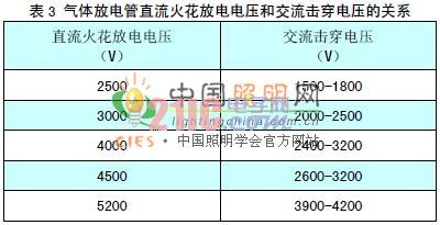 為了使LED路燈能夠滿足安全要求,氣體放電管的耐壓選擇至關重要,應該選取足夠耐壓的氣體放電管與壓敏電阻配套,壓敏電阻和氣體放電管串聯電路(如圖1)應能夠承受基本絕緣的耐壓。幾種氣體放電管的直流火花放電電壓和交流擊穿電壓的關系見表3,氣體放電管的直流火花放電電壓一般應選不低于2500V。