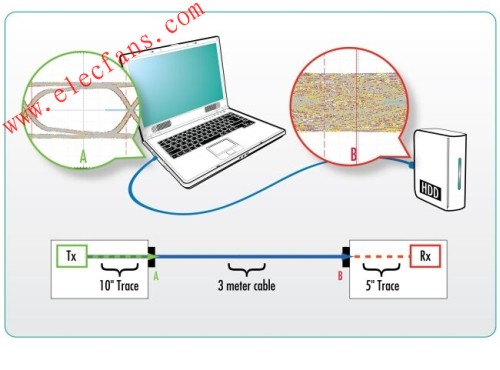 為滿足兼容性要求,USB3.0信號必須可以通過3米長的線纜,并保持信號眼圖開口有足夠的寬度。但這只是部分的路徑,因為在兼容性測試中測量的是接收器經過均衡化處理過后的信號。舉例來說,在一般的筆記本電腦架構中,USB控制芯片到連接器的距離大約是10英寸,因此信號實際上可能另外經過大約半米的路徑和數個連接器。