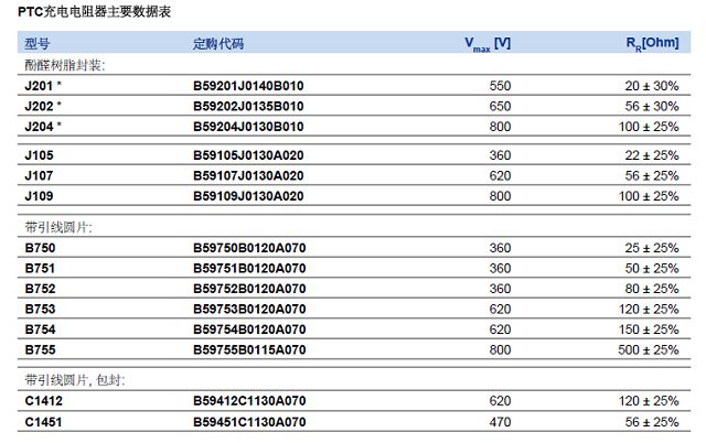 TDK-EPC常用的ICL PTC的規(guī)格型號如下表: