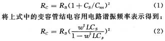 圖1到圖2所示的并聯電容Cp總是存在的。因為電感線圈匝間電容是不可避免的,每個電感均有其自電容,把這個自電容等效為并聯的電容Cp,且認為是無耗的,則總的調諧電容值升高。如果CS足夠大,可以忽略他的影響,則得到有效調諧電容為: