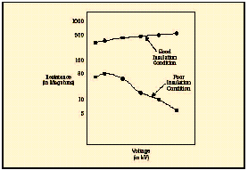 [page]在短時測試中,兆歐表被直接跨接在被測設備上,施加大約60秒的測試電壓。為了在大約一分鐘的時間內使絕緣值讀數達到穩定,應該只對低容性的設備進行該項測試。基本的連接步驟和驗證測試時相同,所施加的電壓按DC測試電壓公式進行計算。當測試好的設備時,您會注意到,隨電容容量和吸收電流的降低,絕緣阻抗值會穩定上升。由于溫度和濕度會影響測試結果,應該在標準溫度(大約20?C/68?F)下、露點之上的環境下進行測試。 當設備的額定值等于或小于1000伏特時,絕緣讀數應該為1MΩ或更高。當設備額定值高于1000伏特時,理想的阻抗應該為每1000伏特上升1MΩ。所測量的絕緣阻抗值通常會略低于以前記錄的值,其下降的趨勢規律如圖6所示。絕緣值下降的斜率是絕緣材料老化程度的正常信號。陡峭的下降斜率是絕緣失效或可能出現故障的先兆。