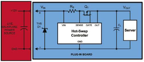 為此,熱插拔控制器曾被斷言是為分布式電源系統(tǒng)提供非??尚械南到y(tǒng)保護和電氣管理的首選方法,特別是可以滿足服務(wù)器市場的嚴格要求。這類應(yīng)用的熱插拔控制器的特點一般包括:帶電板插入和拔出的安全控制(浪涌電流控制)、故障監(jiān)測診斷和保護、精確的電氣(電壓、電流、功率)和環(huán)境(溫度)參數(shù)測量,以提供模擬或數(shù)字域的實時系統(tǒng)遙測。特別是,如果一個服務(wù)器機架上的一個線卡發(fā)生故障,該故障應(yīng)與該特定線卡相隔離,這樣既不影響系統(tǒng)背板,也不影響由帶電背板供電的其他線卡。通常情況下,熱插拔控制器連接到以下器件:
