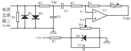 電流檢測電路如圖3所示。通過電流互感器對測試電流進行采樣,將電流互感器的二次側輸出信號經濾波、放大、電壓提升等電路,變換為A/D模塊可以采集的單極性電壓信號(0~5V)后送入LPC2132。