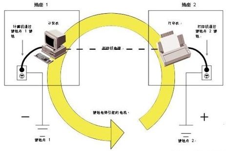 工廠設施中的接地連接只能連接到電力線路配電板上的單一連接點。這種與地面單點連接的方式可以避免由于疏忽而造成多個接地點。多個接地點會造成市電電壓的差異,導致不希望的電流流向低壓數據線。并對數據傳輸造成噪音干擾,雖然不會引起太大的損害,但也可能會形成瞬變電壓浪涌,嚴重損壞設備傳輸線。圖 2 顯示了一個接地回路示例。每個設備獨立接地(每個電源插座都參照不同的接地點)。如果設備通過某種形式的接地(也導電)數據線連接在一起,就會出現問題。在圖2 中,計算機使用并行通信電纜連接到打印機。如果所使用設備接地點之間存在電勢差(有電荷差異),那么電流可能會通過并行電纜從一個設備流到另一設備,以便中和電荷。這就是“接地回路”,會對設備造成嚴重損壞,因為設備在正常條件下只需很小的電力就 可以工作。雖然這個示例只顯示了一處設施,但接地回路也可以在不同設施之間形成。