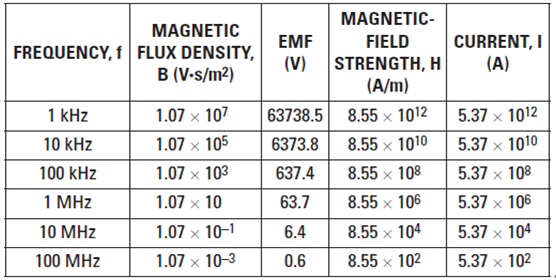 通過將下列數(shù)值插入方程式 8 中,推導(dǎo)出表 1 所列磁通密度的頻變值: