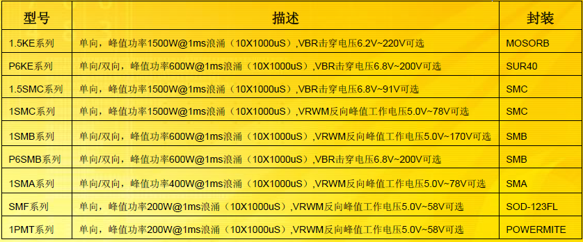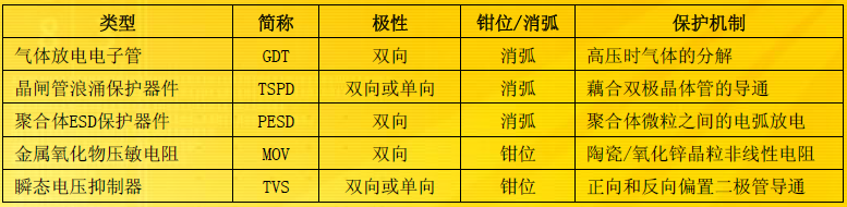 市場上有一系列對電子系統起保護作用的產品。下表簡單描述了各種產品的特征。