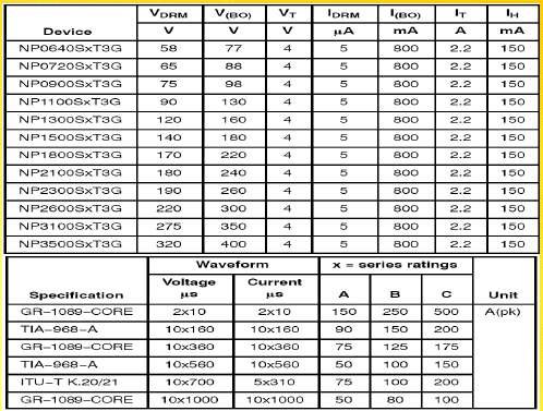 ONSEMI晶閘管浪涌保護器件NPxxSAMC系列