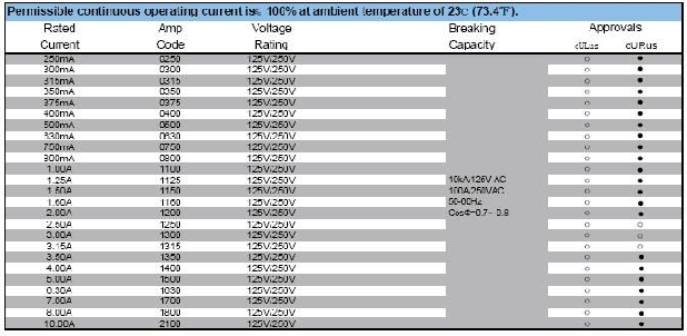 512系列: 額定電壓:交流250V, 延時,500 mA 到15A