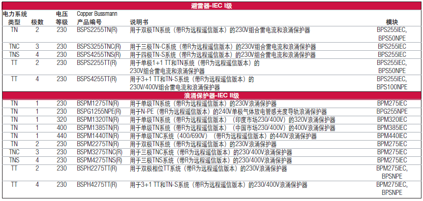 - Cooper Bussmann用于所有IEC應用的高性能防雷和浪涌保護產品