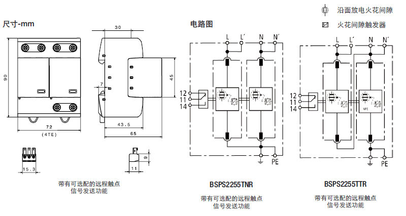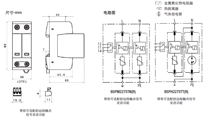 這種雙極設備的特點是,在TN系統中作為一種結合了避雷器和浪涌保護器的模塊使用(“2-0”電路)。