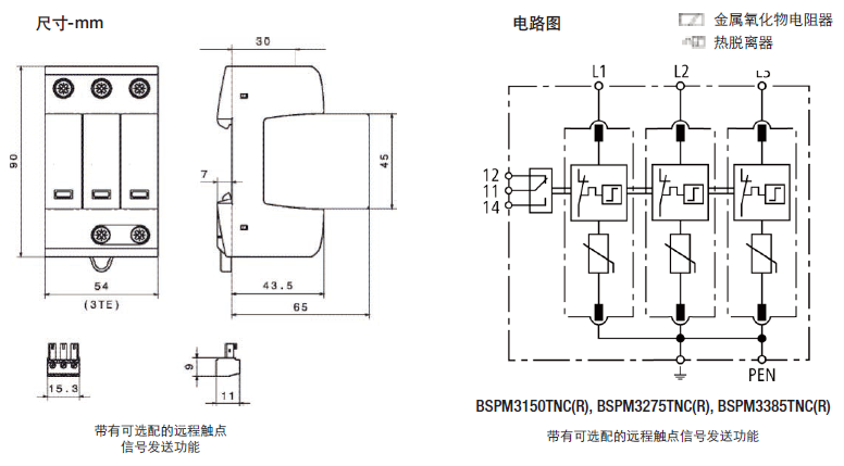 這些三極設備的產品特點是將它們用在TN-C 120/240V或230/400V系統中避免浪涌(“3-0”電路)。