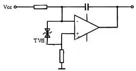圖4 TVS在運(yùn)放差模輸入端防止過(guò)壓損傷的保護(hù)電路