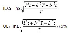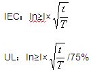如果保險(xiǎn)絲通以一定的電流(Ix)可以永久工作,那么此時(shí)保險(xiǎn)絲的聚熱與散熱一定處于平衡狀態(tài),此時(shí)保險(xiǎn)絲的散熱功率為Ix2T。如果尖峰電流產(chǎn)生的能量≤Ix2T,可以認(rèn)為尖峰電流產(chǎn)生的能量不可能使保險(xiǎn)絲的溫升大于Ix時(shí)的溫升。對(duì)于滿足不同的安規(guī)體系,Ix的數(shù)值有所區(qū)別,IEC體系下可以認(rèn)為等于In;UL體系下可以認(rèn)為等于75%In。