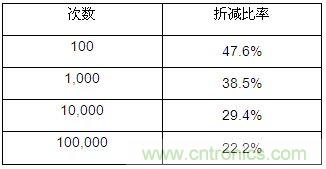 >> 預(yù)測(cè)100億次(2萬(wàn)小時(shí)+)和1000億次(20萬(wàn)小時(shí)+)的脈沖折減比率期望值分別為:2.6%和2%。但是基于現(xiàn)有數(shù)據(jù)預(yù)測(cè)是有誤差的,從統(tǒng)計(jì)學(xué)的角度,有95%的把握分別落在(1.3%, 3.8%)(1%, 3.1%)范圍內(nèi)。在實(shí)際計(jì)算中,我們都取下限作為計(jì)算標(biāo)準(zhǔn)。
